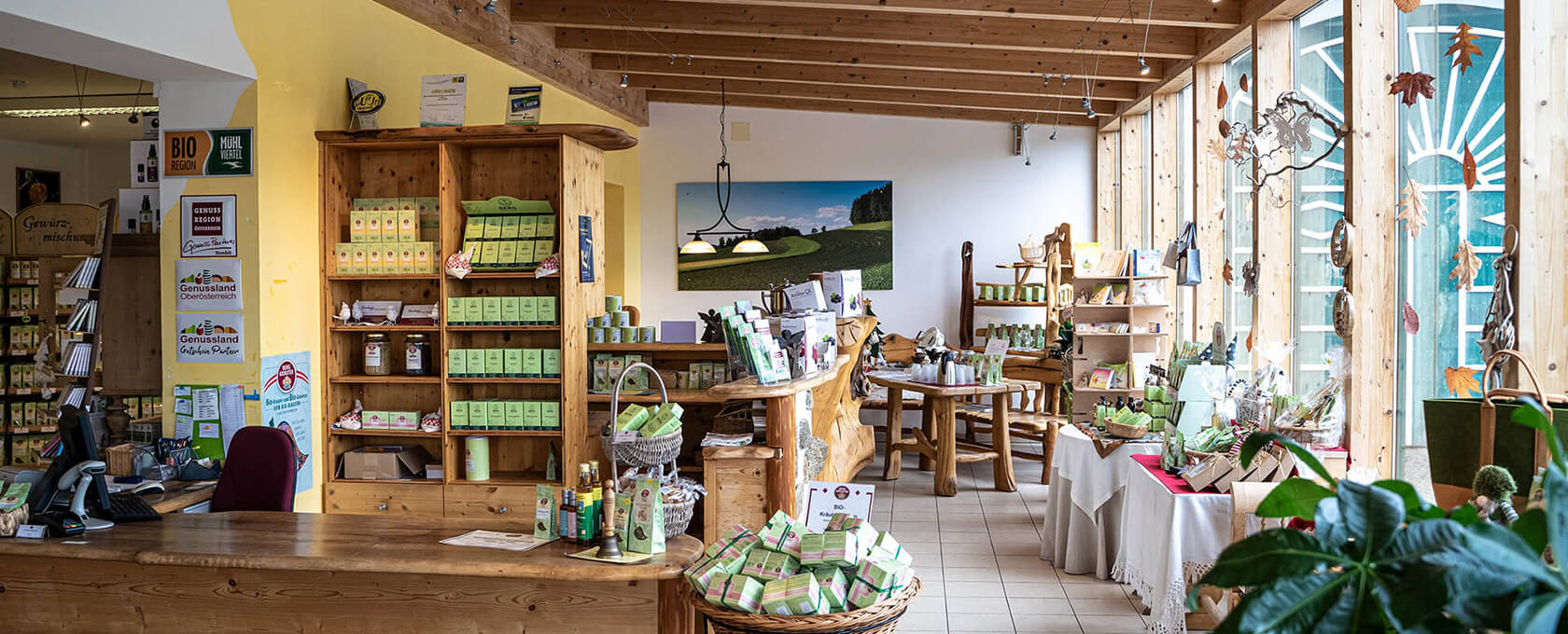 Die Bio-Kräuter der Österreichischen Bergkräutergenossenschaft wachsen auf kleinen Feldern im Mühlviertel - inmitten der bergigen Landschaft - auf einer Seehöhe von bis zu 900 Meter. Das feine Zusammenspiel der granithaltigen Böden, der warmen Tage und der kalten Nächte sowie das notwendige Fingerspitzengefühl der Bauern lassen die Kräuter optimal gedeihen. Für die Tee- und Gewürzmischungen, Sirupe, Essig und Öle, Schokoladen, Kekse und auch Kräuterbäder, die Online oder vor Ort in der Kräuterei in Hirschbach erhältlich sind, werden die Kräuter schnellstmöglich und schonend direkt auf den Betrieben der Landwirte getrocknet. Kurze Wege, knifflige Innovationen und behutsame, gut durchdachte Verarbeitungsschritte sorgen nicht nur für höchste Qualität, sondern erhalten so auch den bestmöglichen Geschmack.
