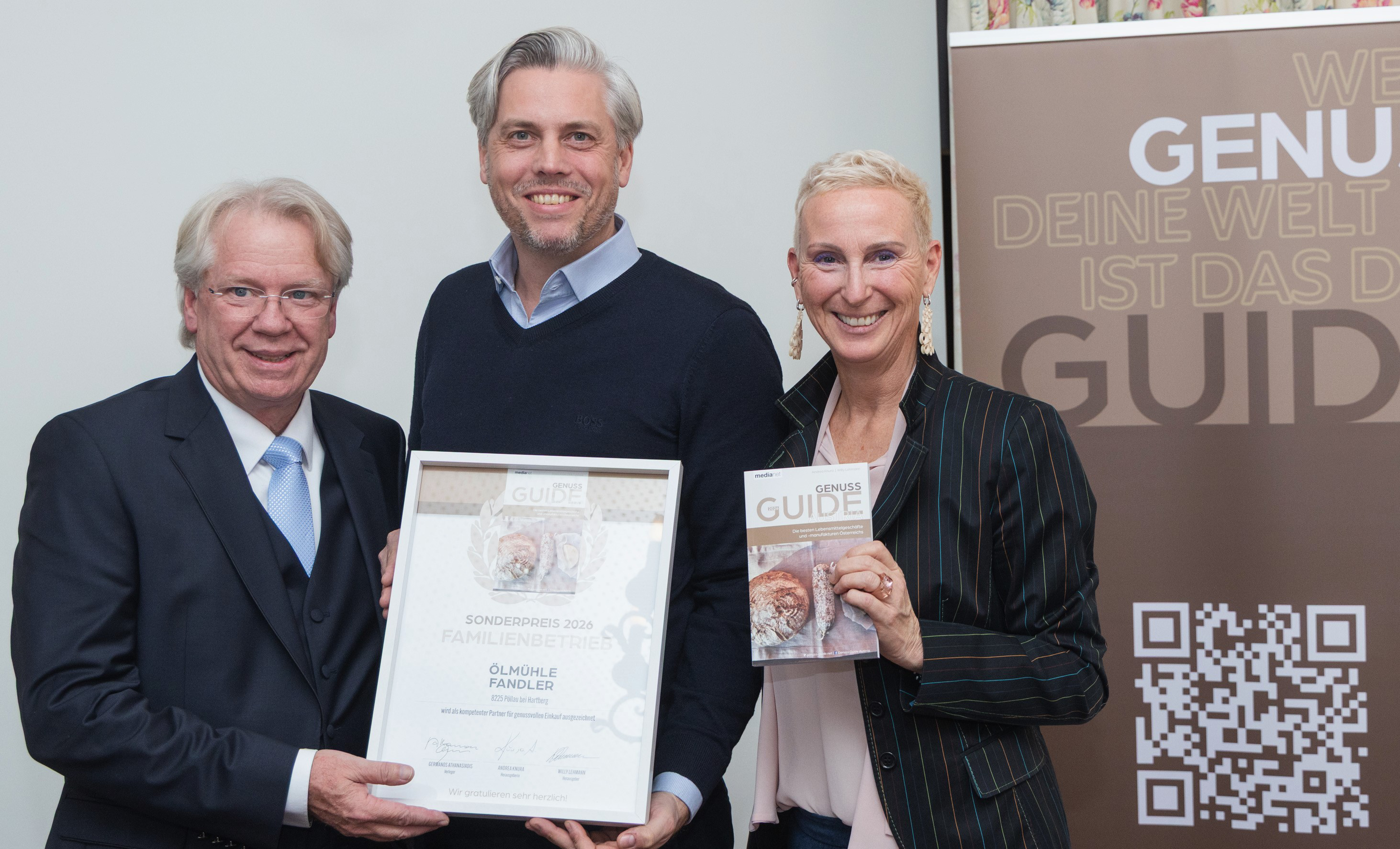 Am 25. November 2025 wurde im Wiener Restaurant Zum Leupold der im medianet Verlag erschienene Genuss Guide Austria 2026 - ein Kompendium der besten Delikatessenläden, Bäckereien, Fleischereien, Geschmackswerkstätten und Lebensmittelmanufakturen in Österreich - der Öffentlichkeit vorgestellt. Der Guide des Herausgeber-Duos Andrea Knura und Willy Lehmann ist jenen Menschen, Geschäften, Produktgruppen und Geschichten gewidmet, die Österreichs kulinarische Vielfalt ausmachen. Der Genuss Guide bleibt dabei seinem Grundgedanken treu, Qualität sichtbar zu machen und genussvollen Lebensmittel-Einkauf in seiner besten Form zu würdigen.