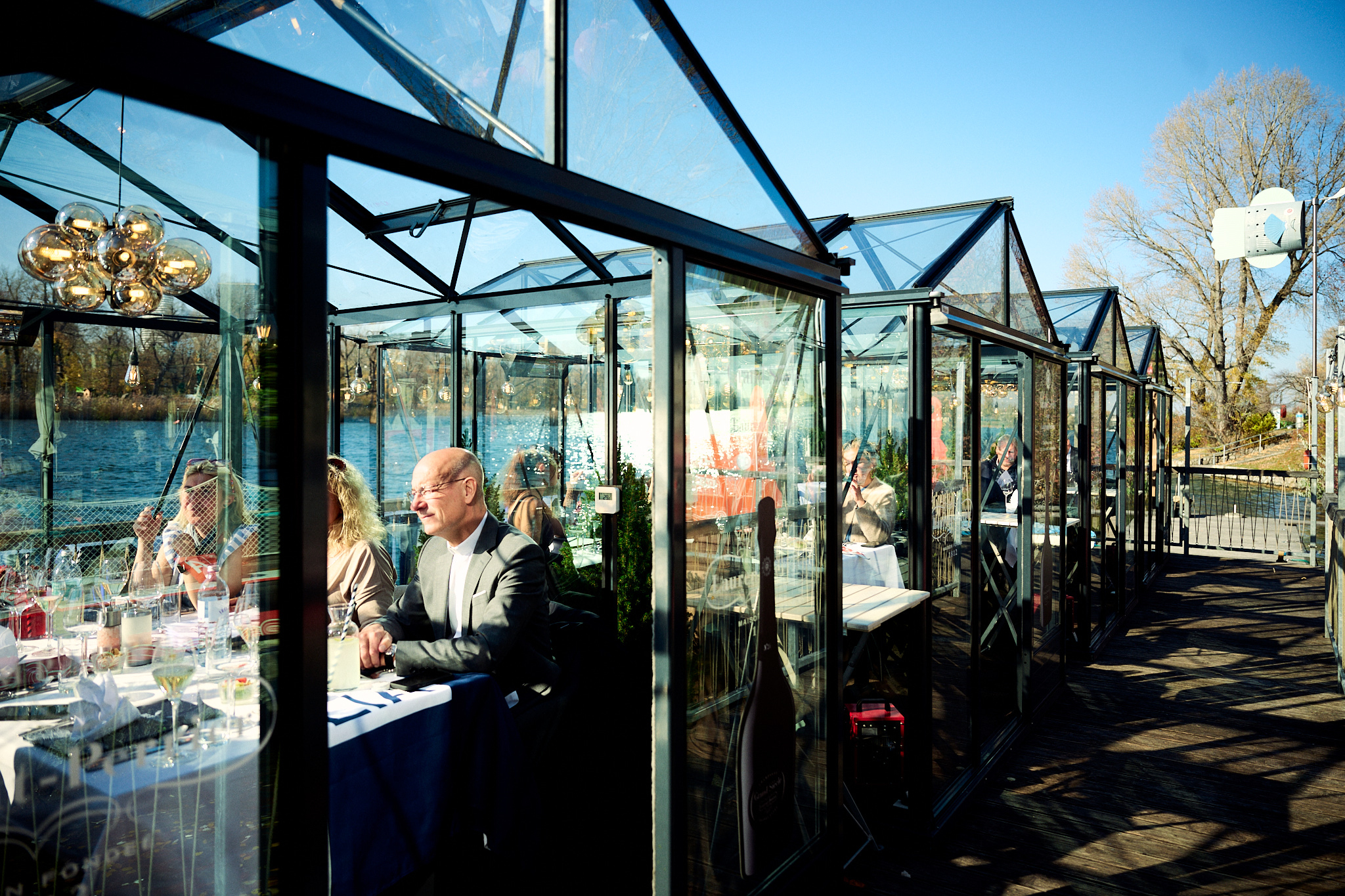 Die Glashäuser am Steg des Bootshauses sind ein Highlight für jeden Anlass und bieten die Möglichkeit, auch im Winter die traumhafte Kulisse an der Alten Donau zu genießen. Ob für ein stimmungsvolles Frühstück am Wasser, ein romantisches Moonlight-Dinner oder ein entspanntes Treffen mit Freund:innen – die Glashäuser verbinden modernes Design mit der einzigartigen Atmosphäre der Alten Donau. Für Gruppen von vier bis sechs Personen bieten die beheizten Glashäuser Platz und Komfort. Sie sind mit einer Bluetooth-Soundbox ausgestattet, um für die passende musikalische Begleitung zu sorgen. Reservierungen sind bequem online möglich und machen jeden Anlass zu einem besonderen Erlebnis.
