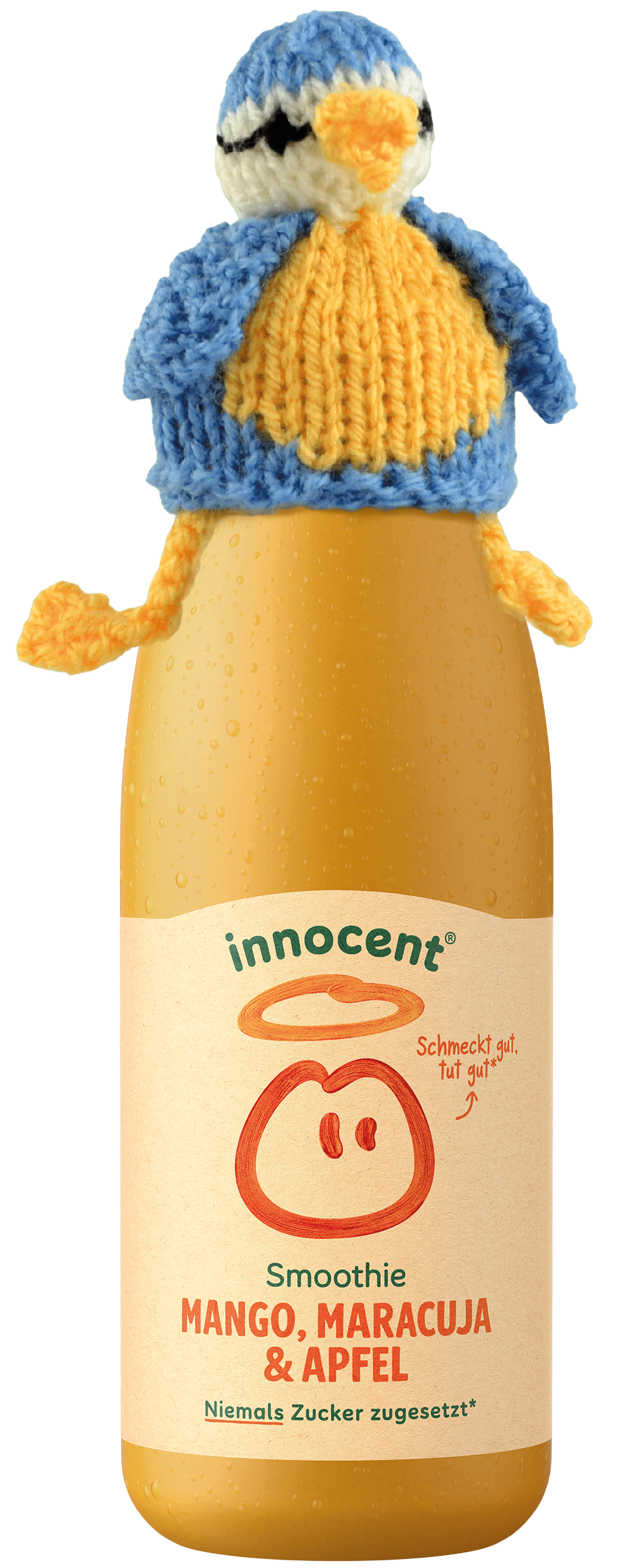Erstmals im Jahr 2010 rief innocent österreichweit Tausende Menschen dazu auf, beim „Großen Stricken“ kreative Mützchen anzufertigen, die später die Smoothie-Flaschen zierten. Ab diesem Jahr wird die Aktion fortgeführt: Gemeinsam mit der Caritas sorgt innocent in Österreich dafür, dass das Gute aus Obst und Gemüse genau dort ankommt, wo es am dringendsten gebraucht wird. Für jede verkaufte Flasche mit Mützchen spendet innocent eine Portion Obst und Gemüse an Menschen in Not – z.B. in Mutter-Kind-Häuser, Obdachloseneinrichtungen und Lerncafés. Ganz ohne Mehrkosten für die Käufer, denn innocent übernimmt den gesamten Betrag.