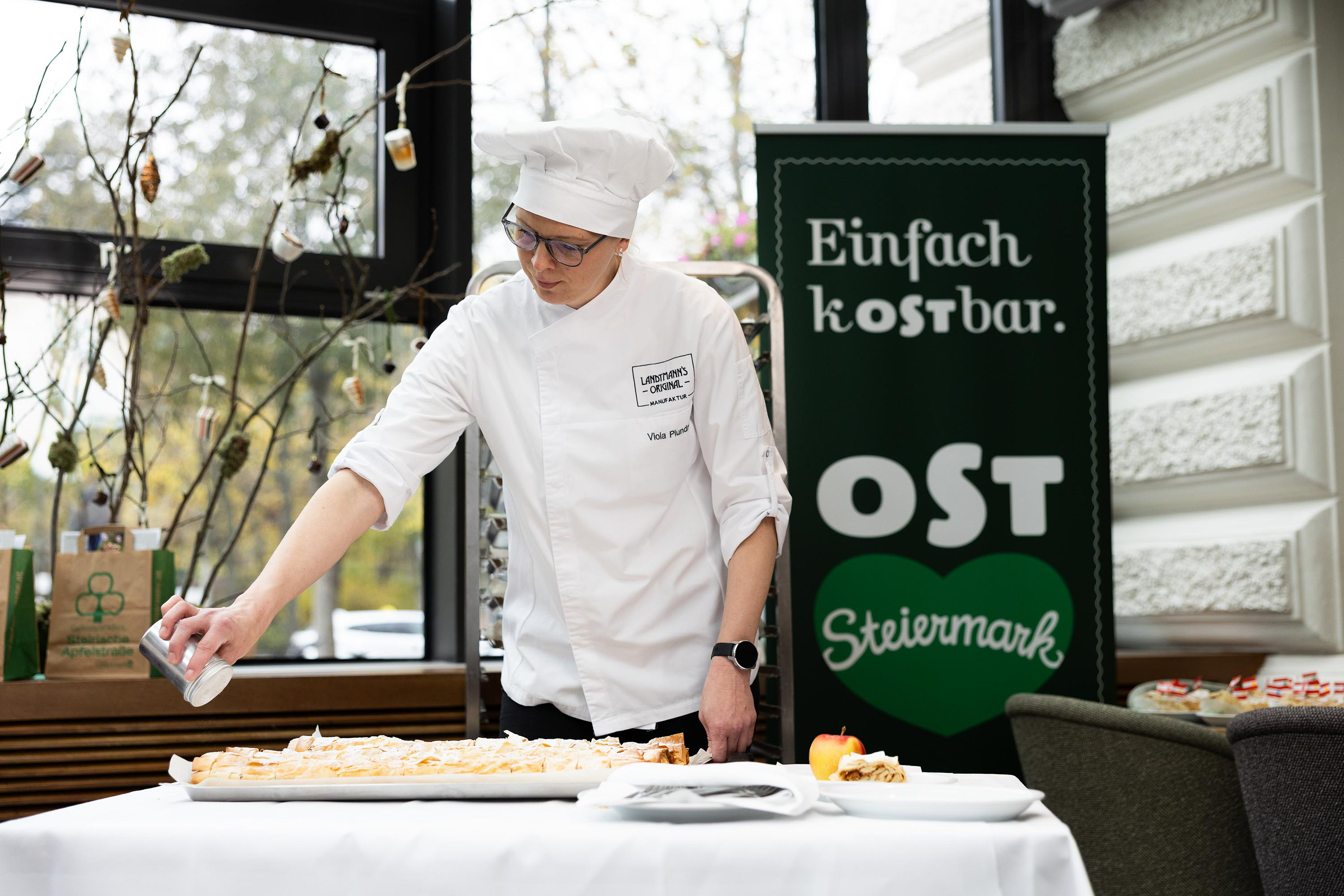Zum Tag des Apfels zeigte das Traditionskaffeehaus Café Landtmann gemeinsam mit dem Tourismusverband Oststeiermark, der Steirischen Apfelstraße und der Marke frisch-saftig-steirisch, wie viel Handwerk, Geschichte und regionale Qualität in einem Stück Apfelstrudel stecken.